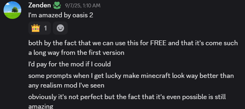 Users can trigger promptable events via text while inside the simulation (e.g. “a wild animal appears”) and Genie 3 will insert that into the world. This is very similar to what one would imagine Oasis’s future iterations doing (and Oasis, in a limited Minecraft form, already allowed text prompts to influence content like spawning items).