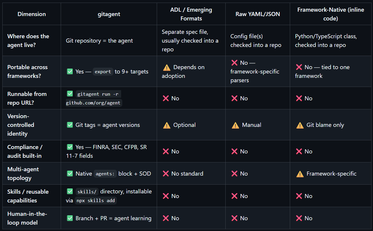 And the bet that Git is the right transport layer for that is a reasonable one. Developers already trust it for collaboration, versioning. Agents might as well live there too.