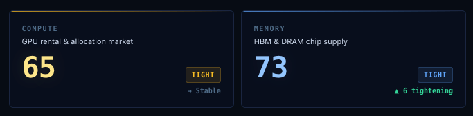 Our Compute Regime and Memory Regime indices are in the tight range, which means demand is far exceeding supply. Amazon, NVIDIA, and SoftBank just pledged $110 billion to datacenters, with $35 billion of Amazon's bet directly tied to OpenAI's IPO or AGI claims.
