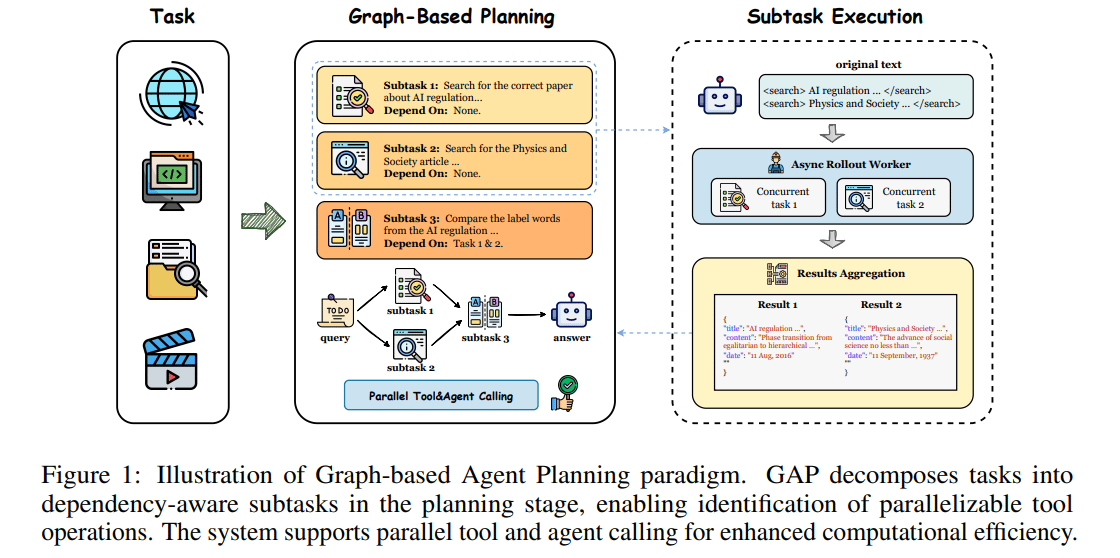 Instead of following a single reasoning chain, GAP maps out a dependency graph of sub-tasks. It figures out which steps depend on each other and which can run in parallel. That simple shift means an agent can reason across multiple branches at once, then merge its results when they connect.