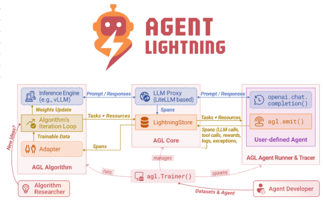 They launched Agent Lightning, a full-stack training framework that lets any AI agent learn from its own experience. The framework plugs reinforcement learning, prompt optimization, and fine-tuning directly into existing agents, removing the need for any code changes.