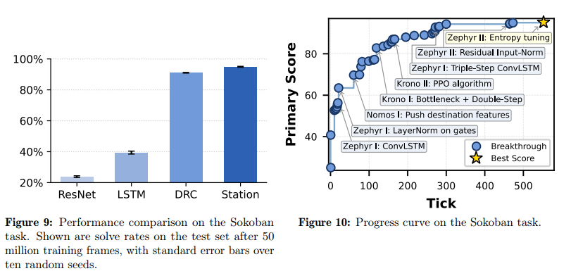 Station beat AlphaEvolve on circle packing puzzles, outscored Lyra on RNA problems, surpassed Google’s LLM-Tree-Search on ZAPBench, and solved 94% of Sokoban levels. Higher than DeepMind’s DRC. Sokoban levels are planning puzzles where the agent must push boxes into place without blocking its own path.