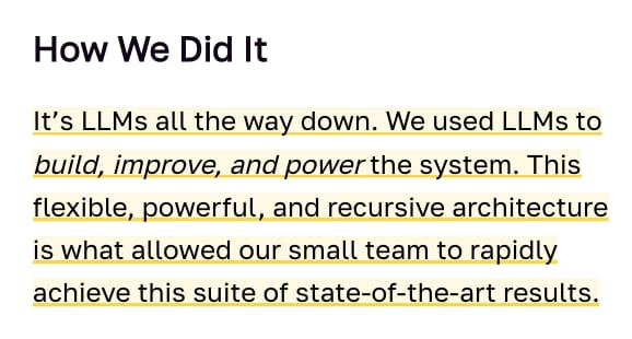Their summary of the whole architecture: it’s LLMs all the way down.