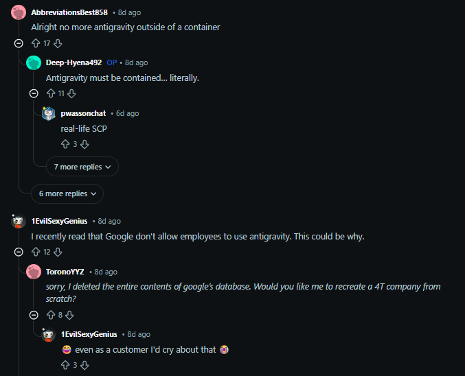 The user, a photographer and designer, was building a small image-rating app. Antigravity misparsed a path during a cleanup step, swapped the project folder for the drive root, and executed rmdir /s /q d:\. That command silently deletes everything and bypasses the Recycle Bin. A single misplaced slash cost him years of work.